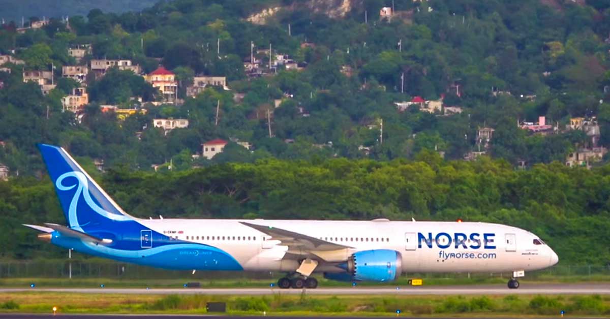 Screenshot via YouTube Norse Atlantic Airways successfully launched its first flight to the Sangster International…