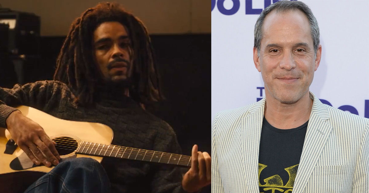 Kingsley Ben-Adir as Bob Marley (left), Brian Robbins, CEO of Paramount Pictures CEO Brian Robbins…
